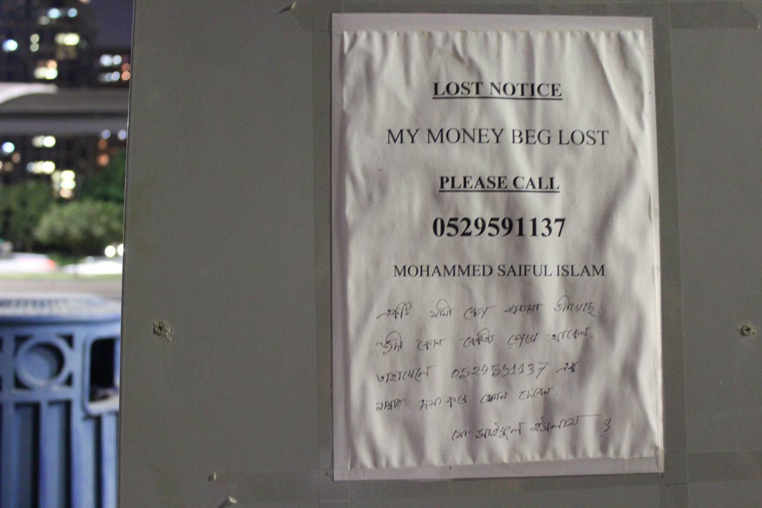 А это объявление нам попалось в Абу-Даби перевод примерно такой: "Помогите! Я потерял много денег. Нашедшего просьба позвонить по телефону...."