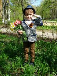 Ещё каждый год с детьми ходим на городские мероприятия в День Победы и обязательно сын (доча ещё мала была прошлые годы) дарит ветеранам цветы!!! Для меня тема войны очень животрепещущая, иногда ночами мне сниться та война, да так всё "натурально", что я научилась со временем заставлять себя просыпаться (в страхе)..как-будто я и вправду там была и переживала весь этот ужас....Сын тоже "проникся" темой войны, мы читали книги, смотрели фильмы и, конечно, вели беседы о ВОВ и продолжаем это делать из года в год. Мне очень хочется, чтобы память об этих страшных годах войны и празднике Победы жила бы и в наших детях и в дальнейшем поколении!