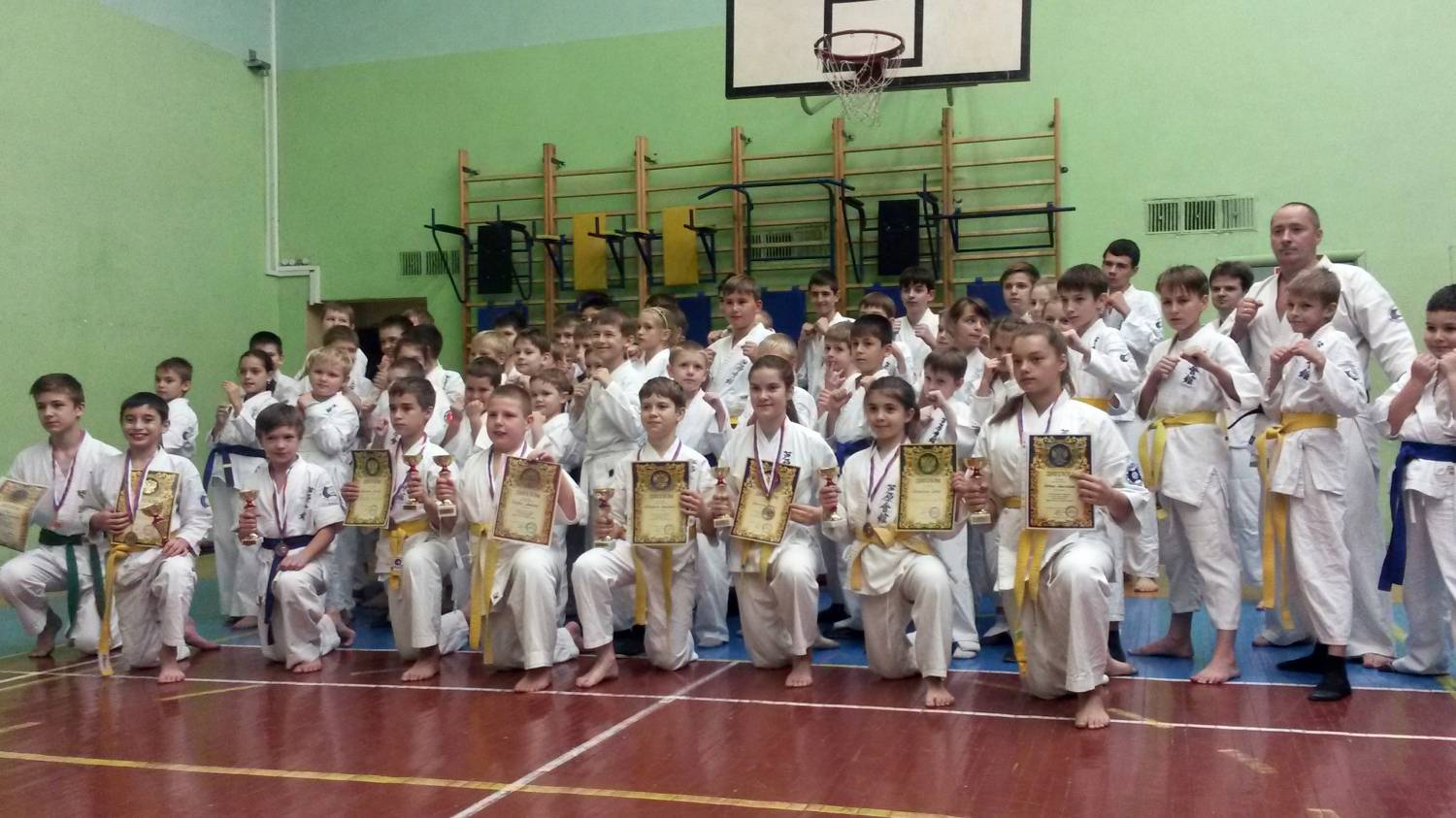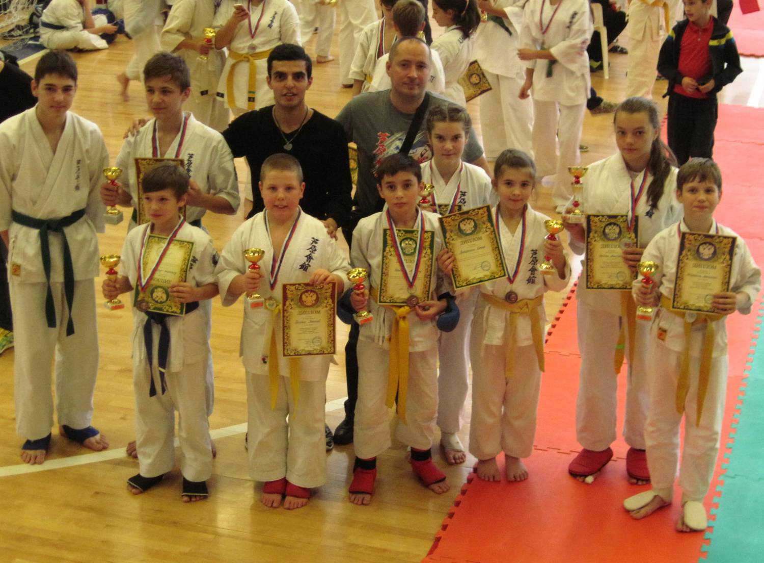 Пичулина-Ирина, а за что медали , за ката или кумитэ? И сколько лет занимаются дети, если у них уже синие пояса?