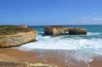12 апостолов Двенадцать апостолов— группа известняковых скал в океане возле побережья в Национальном парке Порт-Кемпбелл, расположенных на т. н. Большой океанской дороге в австралийском штате Виктория. Их внешний вид и небольшое расстояние один от другого сделали это место популярной туристической достопримечательностью. Поначалу место носило название «Свинья и поросята», которое в 1950-х годах с целью привлечения большего числа туристов было изменено на «Двенадцать апостолов», при том что в группе было только 9 скал. В настоящее время скал осталось 8, так как одна из них в 2005 году обрушилась, не выдержав воздействия эрозии (Википедия) Лондонская арка