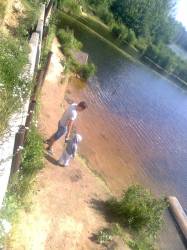 это на въезжаете в лес где цветочный магазин, прямо по асфальтовой дороге,до конца направо, далее по прямой, будет справа чайный домик(там раньше был музей самоваров и чаепитие до 15.00, как щас не знаю, надо уточнить) за ним конюшня, мона с лошадками пообщаться и покататься, далее детская площадка, все проезжаете мимо до конца налево, там справа калитка, надо через нее вел перетащить и считай приехали. Берите булок, уток покормить))))