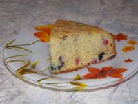 1 стакан манки 1 стакан муки 1 стакан сахара 1 стакан кефира 2 яйца 50 г масла 1 ч.л. гашеной соды 100 г ягод (у меня были замороженные красная смородина и черноплодная рябина, можно взять другие ягоды по вашему вкусу)