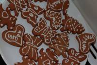 Когда достаёте горячие пряники из духовки, нужно смазать пряники с верху данным составам. На горячих пряниках вода быстро испаряется и остается блеск.