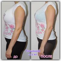 Моя история будет краткой! Вошла я в марафон с ростом 164 и весом 71.4, закончила с весом 63.7кг. Меня сразу же удивил мой вес при первом взвешивании, т.к. домашние весы показывали аж на 2 кг меньше и тут же я поняла что мне просто необходим этот марафон и для похудения была огромная мотивация! Тяжело было только в 1 день, т.к. обычно я могла весь день не есть практически, а поужинать только в 10 часу вечера, а тут НЕЛЬЗЯ после 6 ничего но через пару дней все стало терпимо и мой организм как то привык жить без ужина, на кефирчике В итоге начала делать различные упражнения для тела, которые раньше было делать ЛЕНЬ!!! занялась прессом, открыла для себя много разных действенных методов накачать его. Приучила себя пить воду, правда только на работе получается пить много, а вот дома, в выходные пить совсем не хочется, т.к. в делах забываешь про воду Итог: мне нравится тот эффект, которого я достигла, не предел конечно, но все же, похудели ножки и ушел живот. Есть стала меньше, пить воду больше...буду продолжать заниматься физ.упражнениями и соблюдать правила питания, по возможности! Спасибо всем девочкам из моей группы за боевой дух и сплоченность, мы все молодцы, мы справились и стали ЛЕГЧЕ И КРАСИВЕЕ!!!!